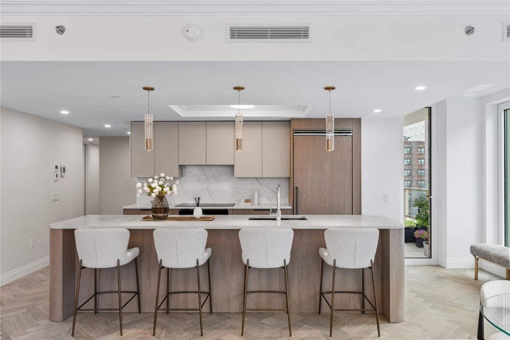 By Appointment Only. Renderings for Reference Only. Building- Introducing a timelessly elegant masterpiece. Welcome to The Austin, a bespoke new development, where every detail is exquisitely designed from the ground up to an enduring standard of luxury, yet completely contemporary. Nestled within the tranquility of what is a lush urban enclave, The Austin has arrived – inviting you to the future of Forest Hills. The seven-story collection of 98 residences transcends the condominium status quo with outstanding craftsmanship and world class amenities, surrounded by abundant tranquil green spaces. You’ll be immediately drawn to Forest Hill’s quasi-European village surroundings, a charming neighborhood where streets are lined with Tudor homes and tulip trees. Truly an urban masterpiece in Queens, The Austin is surrounded by distinctive architecture, verdant greenery and a thriving commercial district — all within close proximity to Manhattan and surrounding communities. This remarkable LEED Gold/Energy Star certified building, wifi-enabled for complete connectivity, is constructed to deliver a scale that’s truly exceptional. Distinctive design and gracious proportions, with generous tripled-paned windows, create an ambiance in which every residence is fully bathed in abundant light. These oversized windows, constructed of high-performance glass to be remarkably soundproof and energy efficient, are more than portals to the outside world; they’re a luxurious gateway to an elegantly harmonious lifestyle. Convenience also is a top priority. You’ll appreciate the luxury of a parking garage with a dedicated EV charging station for every spot, allowing you to effortlessly power up your electric vehicle right at home. The Austin is committed to providing eco-friendly solutions that align with your modern lifestyle. Residences- Enter the grand lobby — by way of the skywalk bridge over the exposed garden below — and immediately feel right at home. Interiors are as exceptional as they are comfortable. Graceful proportions, soaring ceilings and luxurious finishes are the hallmarks of these distinctive residences. The expansive spaces are framed by floor-to-ceiling triple-paned, superbly energy efficient windows that envelop each home with abundant natural light and captivating views of Forest Hills Gardens. Every element is intended to elevate and enrich everyday life. You’ll appreciate the herringbone wood flooring throughout and custom Scavolini-designed kitchens with Viking appliances, including ducted outside venting range hoods and dryers. Spa-inspired bathrooms are designed to fully pamper, outfitted with deep drop-in tubs and Porcelanosa vanities with luxe Grohe faucets. The Wifi-enabled Mitsubishi split system central heating/cooling system, zoned by room, prioritizes comfort and energy efficiency tailored to your needs. Details matter here. Each residence has been thoughtfully designed with a private concierge closet in the vestibule. Deliveries — packages, groceries, etc. — will all efficiently and conveniently arrive at your doorstep.