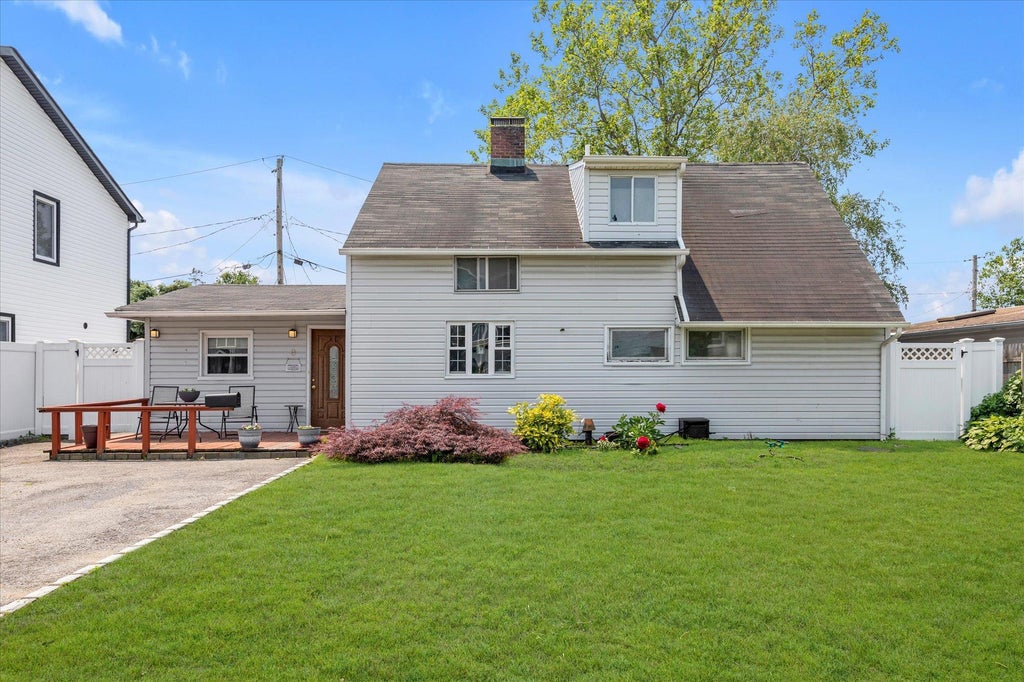 Welcome to this thoughtfully expanded 5-bedroom, 3-bathroom Cape Cod in the heart of Levittown, where comfort meets convenience. The spacious layout includes a first-floor primary bedroom, gleaming hardwood floors, and a warm, inviting living room centered around a charming wood-burning fireplace. Ideal for extended living or entertaining, the home also features versatile office/den space. Modern upgrades enhance everyday living, including stainless steel appliances, an updated kitchen (2010), central air conditioning (2017), updated heating system (2015), newer refrigerator (2020), washer and dryer (2015), and comprehensive whole-house insulation (2020). Some newer windows (2020) and CAT 4 cable wiring in every bedroom ensure comfort and connectivity throughout. Head outside to enjoy a welcoming front patio and a private, fenced yard—ideal for outdoor gatherings or quiet relaxation. Located just minutes from shopping, and public transportation, this move-in ready home offers a perfect blend of charm, functionality, and modern convenience.