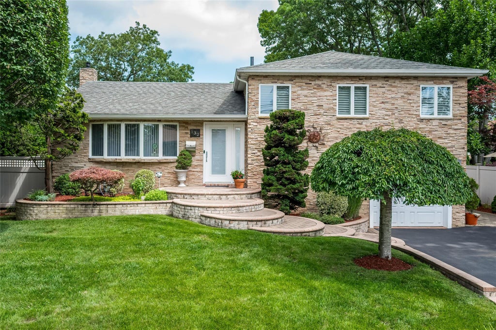 Welcome to this stunning brick-front expanded split-level home nestled in the prestigious Viceroy Estates of Massapequa. Designed for both comfort and sophistication, the open-concept layout showcases a formal living room with gas fireplace and vaulted ceilings, and seamless flow into dining room and expanded eat-in kitchen, both with doors to the custom decking—perfect for entertaining. The primary suite is a sanctuary of sophistication, complete with a spa-inspired shower bath, and custom walk-in-closet. Generously sized secondary bedrooms provide ample space, while a second-story balcony overlooks the showstopping backyard oasis—custom decking with built-in seating and BBQ, a heated saltwater inground pool with an electric cover, a sunken patio, and lush, manicured landscaping—ideal for unforgettable gatherings or peaceful escapes. Downstairs, the family room is the perfect spot to relax and unwind in style. This is the ultimate home for those who love to entertain and live beautifully.