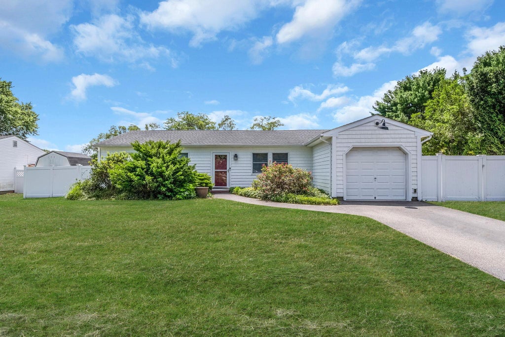 Welcome to 89 Rustic Ave, Medford, NY—a charming and impeccably maintained ranch tucked away in a peaceful, secluded development. This cozy 3-bedroom, 1-bathroom home offers a perfect blend of comfort, efficiency, and style, making it an ideal choice for first-time buyers, downsizers, or anyone seeking a move-in-ready retreat. Step inside to find a wide open layout filled with natural light, vaulted ceilings, and additional versatile living space that can easily function as a formal dining room or den. The home includes a 1-car attached garage, a newer roof, updated pavers, new interior and exterior lighting, and a beautifully landscaped yard with mature privacy plantings and a brand-new in-ground sprinkler system. Enjoy low-cost living with leased solar panels that keep electric bills well below $100/month, along with a newer oil tank, and recently updated plumbing for the heating lines. The home is also equipped with an up-to-date 150 AMP electric panel, as well as entry security system, providing modern convenience and reliability. With nothing to do but move in and enjoy, 89 Rustic Ave offers incredible value and lasting comfort in one of Medford’s most tranquil neighborhoods. Don’t miss this opportunity—it won’t last!
