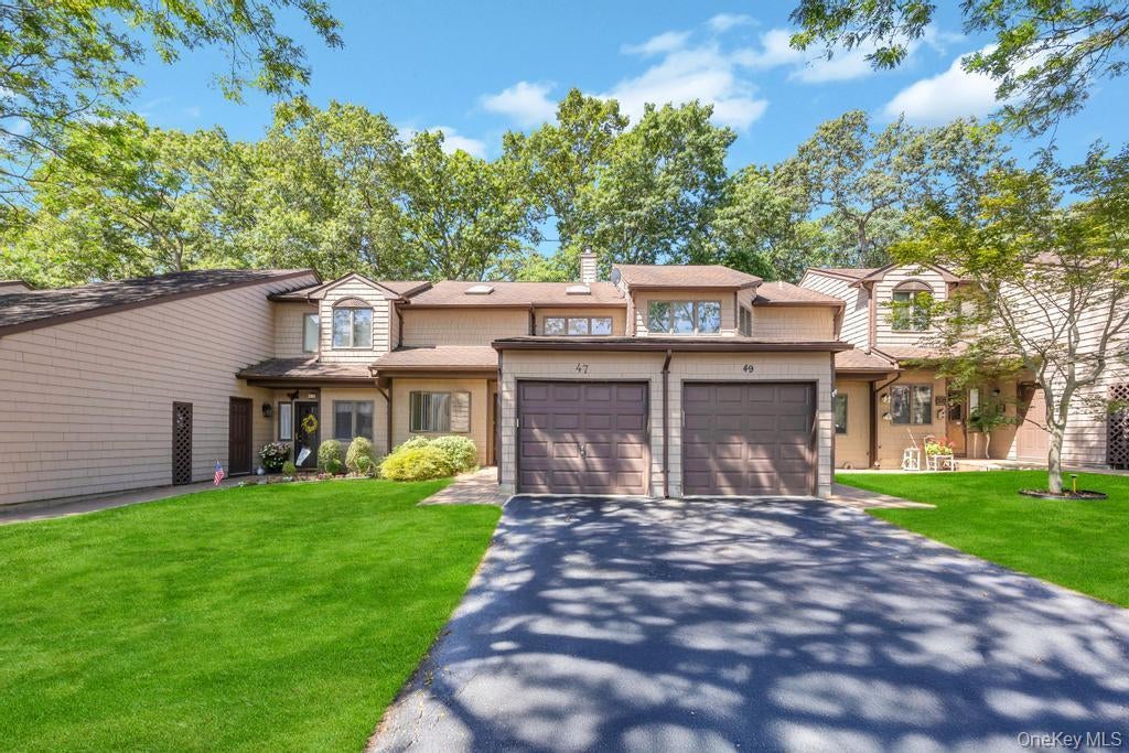 Welcome to this beautiful spacious 2 bedroom, 2-bath Townhouse located at the Woods in the sought after Smithtown School District, thoughtfully designed for comfort and convenience. Featuring a desirable FIRST FLOOR bedroom , full bathroom, this home is perfect for flexible living arrangements. Enjoy modern upgrades throughout, including new luxury vinyl plank flooring, new carpeting and a brand new washer and dryer. The new air handler ensures efficient climate control year-round. Step into the bright and airy living room with vaulted ceilings that create an open and inviting atmosphere. The Kitchen and living areas flow seamlessly to a private outdoor space with low-maintenance Trex decking, perfect for relaxing and entertaining. Upstairs, the primary suite offers privacy and comfort with its own full bathroom and access to a second private Balcony featuring Trex deck-perfect for morning coffee or unwinding at the end of the day. Additional features include an attached garage. Don't miss this move in ready gem, that combines modern finishes to a smart layout. Great location for Commuters, easy access to LIE, close to LIRR, parks, shopping and restaurants.