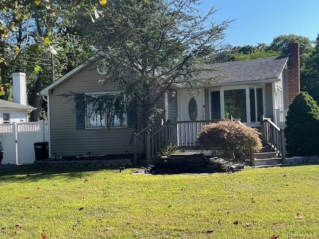 Low Taxes $4402.54 Come & See this great 2/3 Bedroom, 2 Bath Ranch located in Mastic Beach. Featuring an updated kitchen with stainless steal appliances and sliding glass door to backyard deck, updated bathrooms, full finished basement with separate outside entrance, custom brick walkway to front deck, new white PVC fencing in the front yard and back deck, new burner added in 2021. Large property with deck and huge fenced in backyard with a beautiful waterfall garden pond 50 x 218