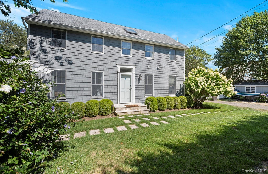Stunning Modern Retreat in Bay Point Spend your downtime in style at this beautifully renovated 4-bedroom, 3-bathroom modern home located in the sought-after waterfront enclave of Bay Point. Just moments from Foster Memorial Beach and only 1.5 miles from Sag Harbor Village, this residence offers the perfect balance of contemporary comfort and timeless Hamptons charm. Step inside to a sunlit open concept living space featuring soaring cathedral ceilings and skylights that bathe the interior in natural light. The gourmet kitchen is a chef's dream, outfitted with premium stainless-steel appliances-including a Bertazzoni range-white quartz countertops, a farmhouse sink, and elegant grey, beige, and white finishes throughout. The main-level primary suite boasts its own private entrance and sliding barn doors for added privacy. Upstairs, two guest bedrooms share a stylishly appointed full bathroom with upscale finishes and raindrop showerheads. The fully finished lower level is ideal for entertaining, offering a spacious media lounge, a wet bar, a fourth bedroom, and an additional full bath with a glass walk-in shower and designer tilework. Outdoors, enjoy your own private oasis with a beautifully landscaped yard, a 20' x 40' heated in-ground pool, an outdoor shower, and multiple areas for lounging or dining al fresco. Conveniently located near Serene Green Organic Farmstand and just minutes to the beach, this home offers tranquility, convenience, and the very best of Hamptons living-including those unforgettable west-facing sunsets just down the road.