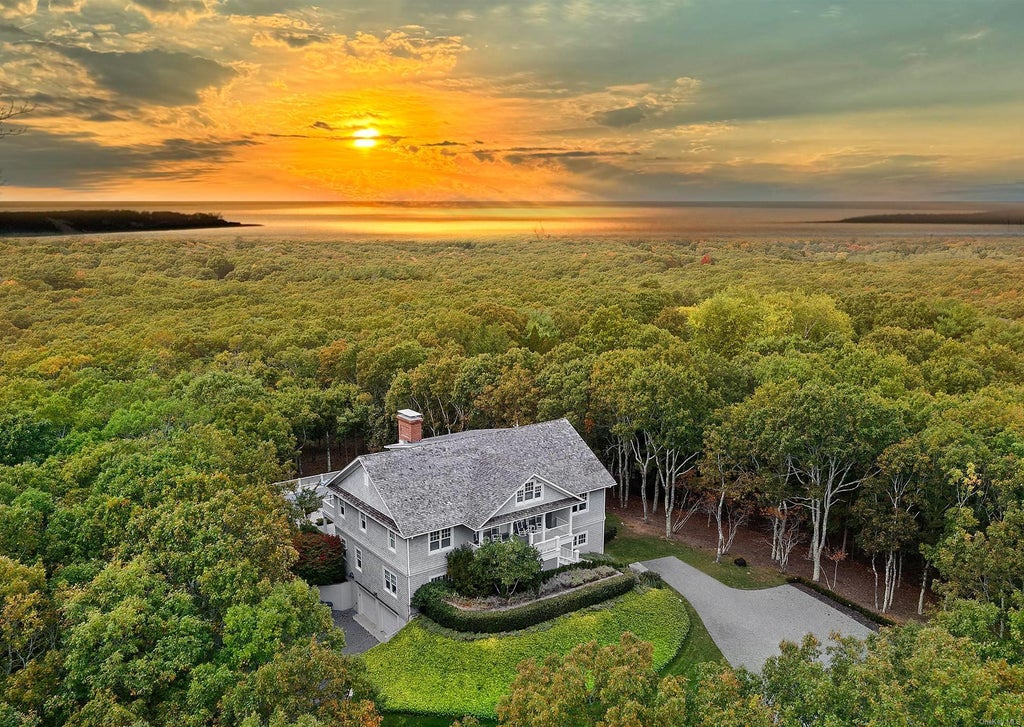 Situated on 2.85 acres of peaceful bliss, this picture perfect spacious 4 bedroom, 4 1/2 bath Classic Hamptons shingle style home checks all the boxes for a country getaway or full time residence in the heart of the Hamptons with 24/7 water vistas and show-stopping sunsets. Gorgeous Little Peconic Bay and Noyac Bay water views are featured from almost every room. Enjoy many dining experiences with open dining inside or dining outside on the show stopper waterside porch overlooking the pool, tree tops and the bay. The primary bedroom is on the main level along with the soaring ceiling living room, a new gas fireplace, dining area and newly renovated kitchen. Steps down to ground level, the expertly crafted home includes 3 additional generously sized bedrooms and a fourth room that could be used as a den, media room, office or bonus room and two full baths. French doors lead outside to the outdoor living room /kitchen and to the 44x20 heated gunite pool. The lower level has an office, gameroom , bar area , a full bath and 2 car garage. Room for expansion. Close to Sag Harbor Village, Southampton and Bridgehampton, pristine white sand ocean beaches, Foster Memorial Long Beach, marinas and inlets with boat launches.